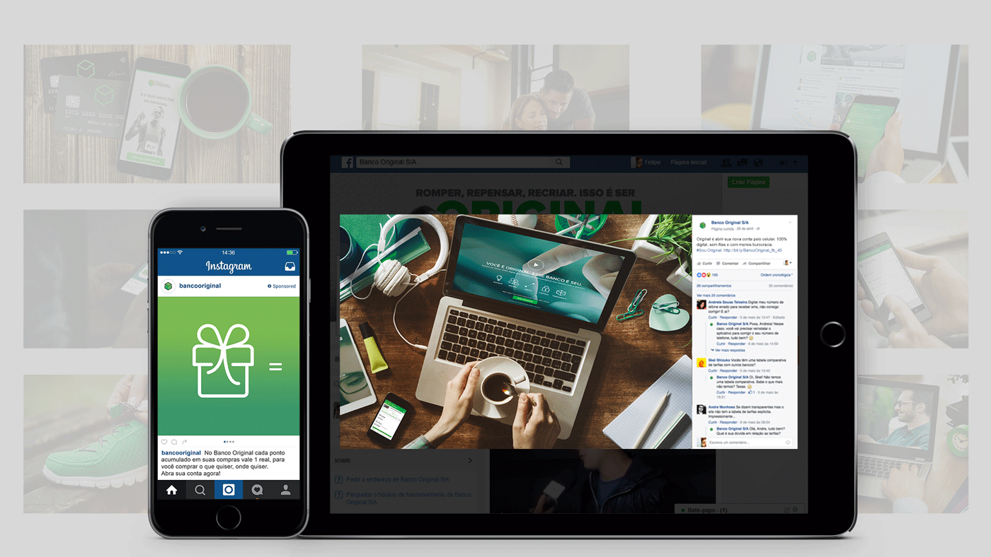Desenvolvi materiais de comunicação para o Banco Original, instituição que marcou a história financeira do país como a primeira a oferecer uma experiência bancária 100% digital e mobile no Brasil. O projeto exigiu uma linguagem visual que unisse a solidez institucional à inovação tecnológica, comunicando de forma clara a agilidade de um banco sem agências físicas.